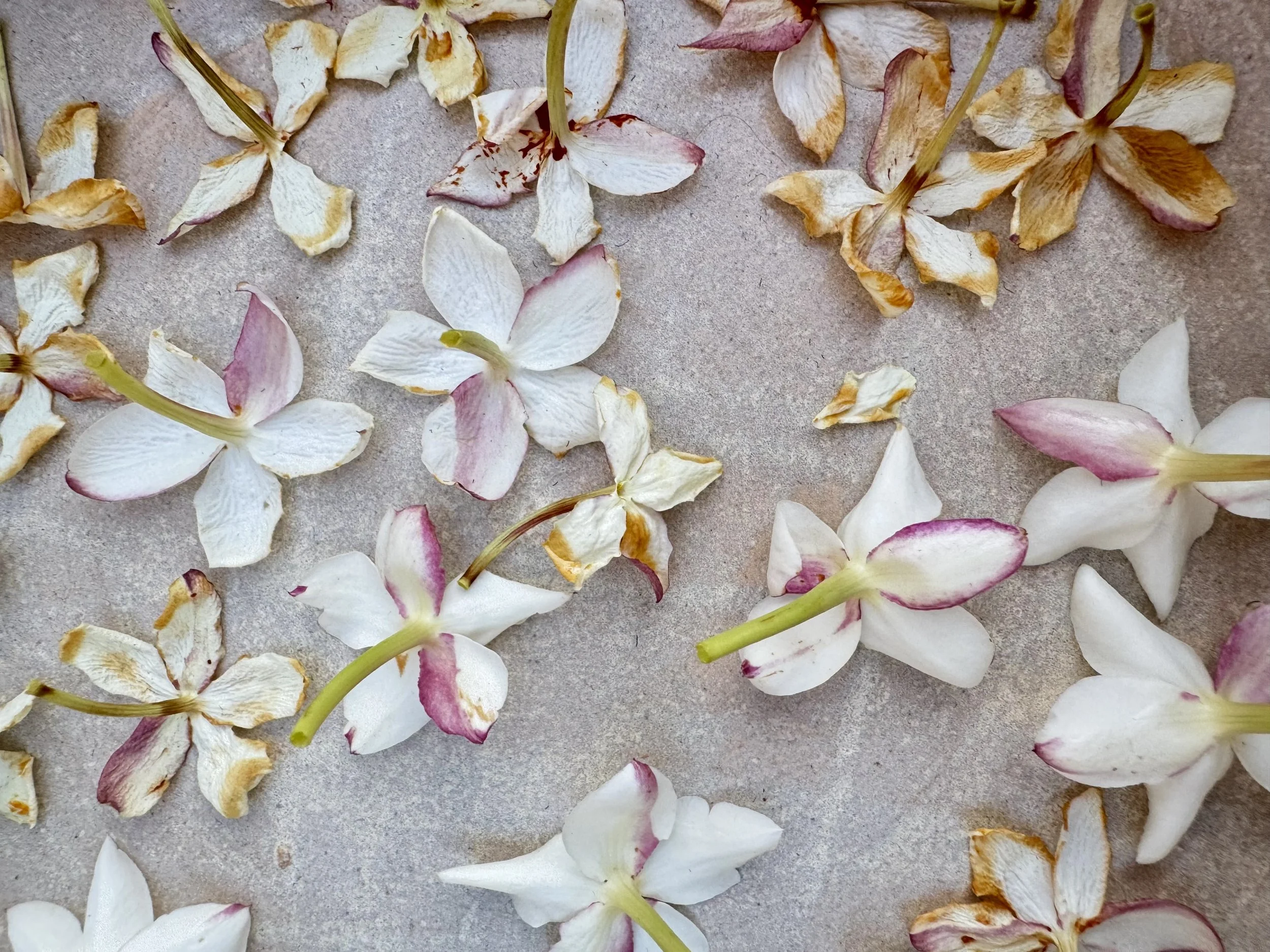 Pictured above: My collection of jasmine blossoms which I collect each morning to dry and preserve.